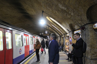 It was really nice to see the visual comparison between Southwark and Baker street during my research study. I chose Baker street as I knew it was a far less cramped station out of the surrounding stops in the area. I really admire how the design of the architecture is kept privately the same, with tall ceilings, brickwork and old wooden panels. Even some signs and light sources were kept in their original state, which accentuated the traditional, Victorian environment. It was also very interesting to see, that amongst the tones of brick wall,I noticed sections of bright red. This seems to be an earlier example of representing colour within a dull, urban environment. I believe it was used to convey the traditional 'Red' colour associated with the Underground which further conveys the iconic system. Also on many of the concave walls and pillars were many old crests and insignias. This station isn't just an old station, but a mini historical museum that showcases all different aspects of London. This particular area as well is often associated to Sherlock Holmes, for books and movies involving the station. This is visible represented in some of the tile work of the ticket vendor hall, where small silhouettes of Sherlock's profile is repeated. It is really pleasing to see just how much effort has gone into making this station, generating history no matter how much we evolve as people. Permanent reminders of a times we're forgetting as travellers, I think it's nice to take time and look a little deeper in these stations, as there truly is significant and beautiful details. Traditionally British and very much grounded to London, Baker street is a fine example of the cities success in the Underground Transport service. It is also visually satisfying to see how the use of bright spotlights add depth to the tunnels and outer walkway routes. Producing sharp contrasts between light and shadow, bringing out the material and texture of the inner infrastructure.